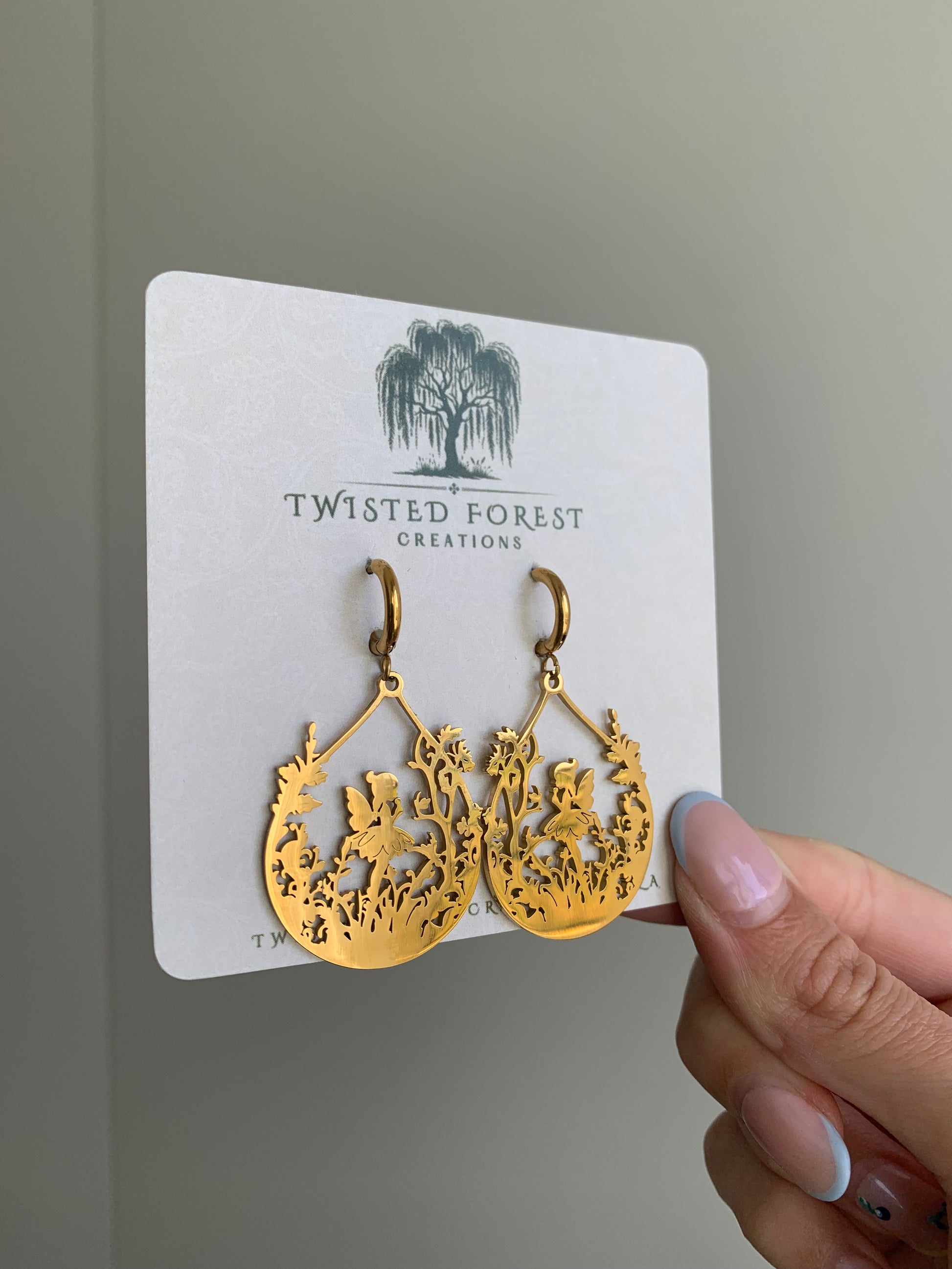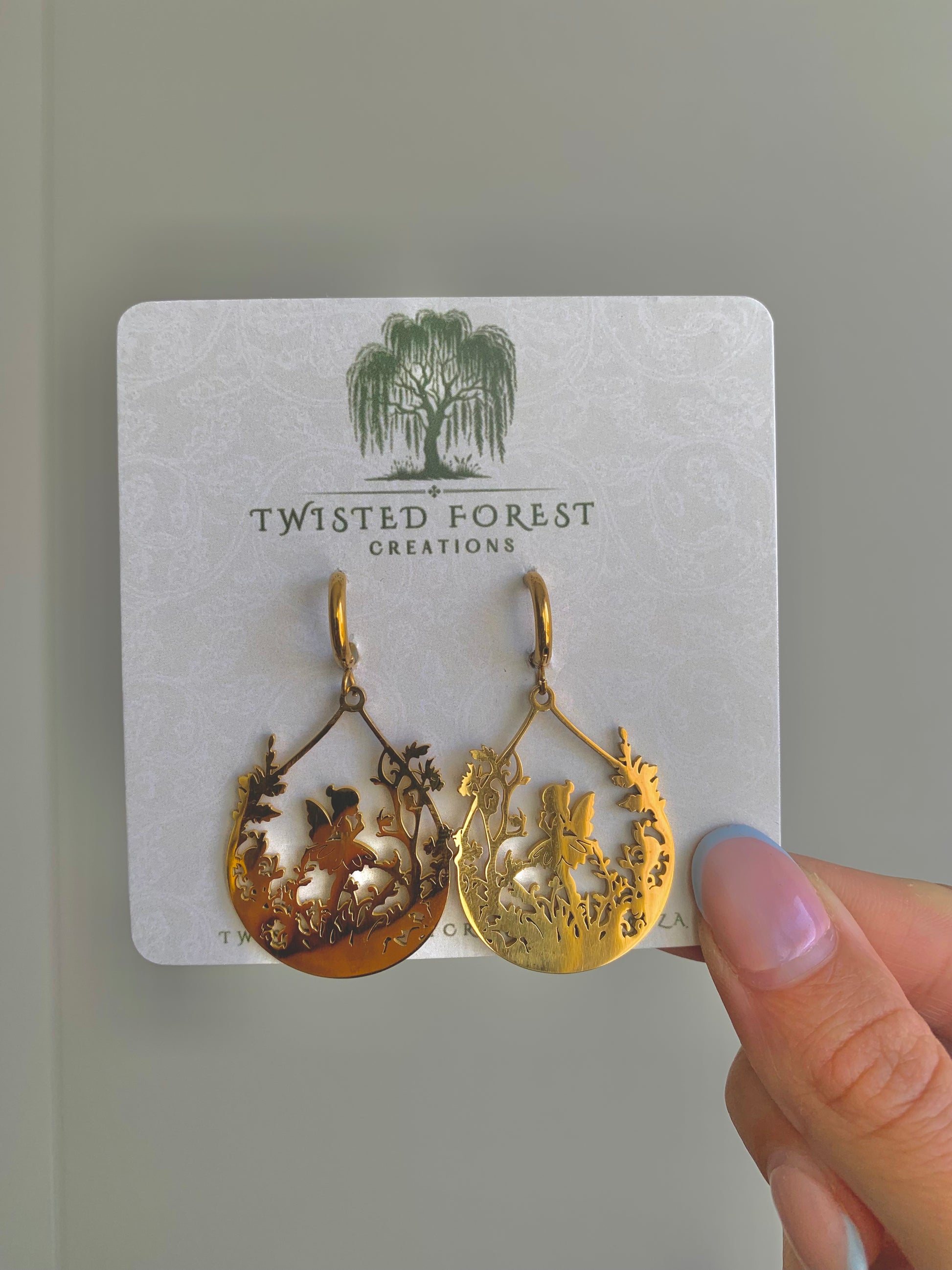 Stainless steel/gold-plated stainless steel fairy motifs on stainless steel/gold-plated stainless steel hoops