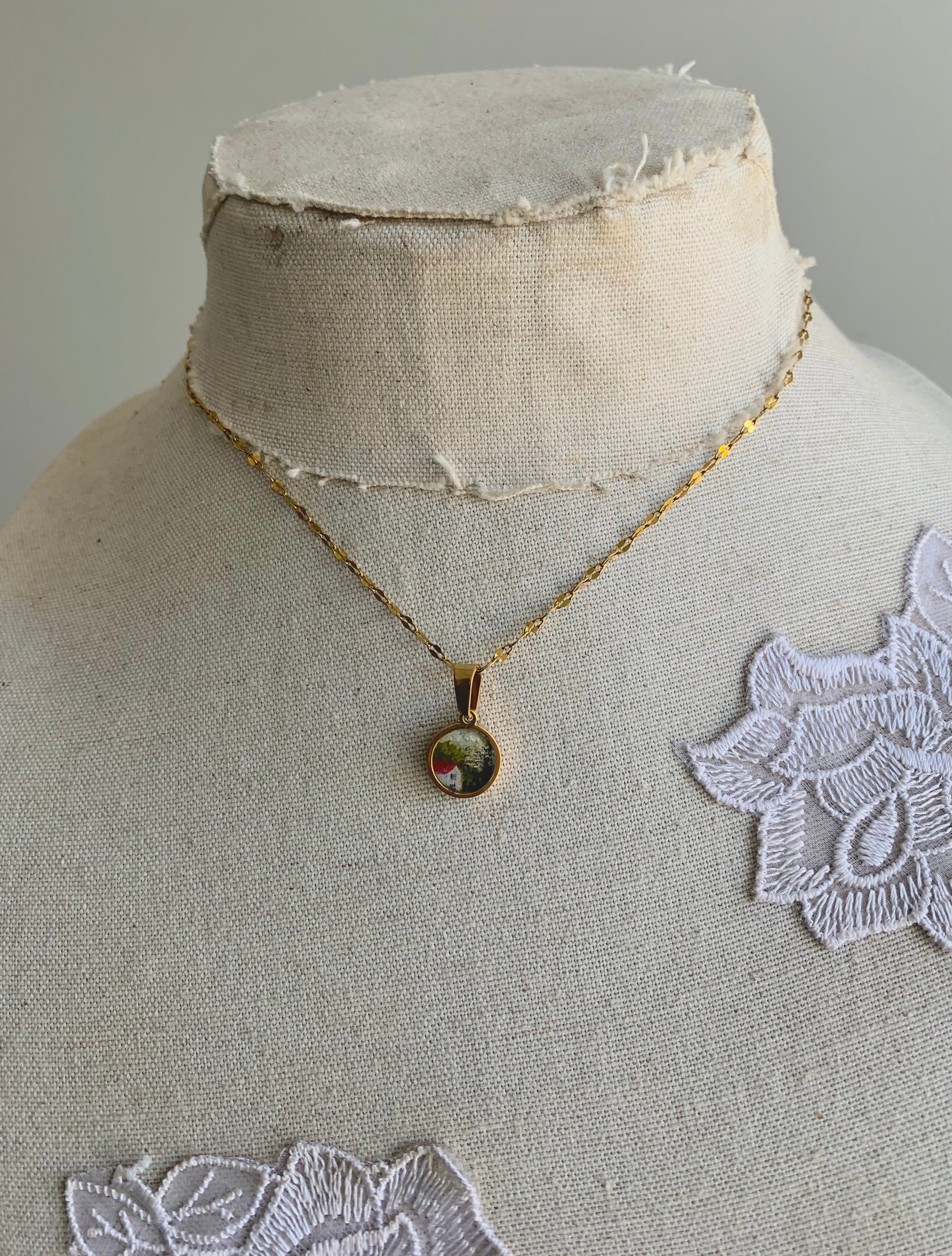 ‘Forest Cottage’ Mini Painting Necklace