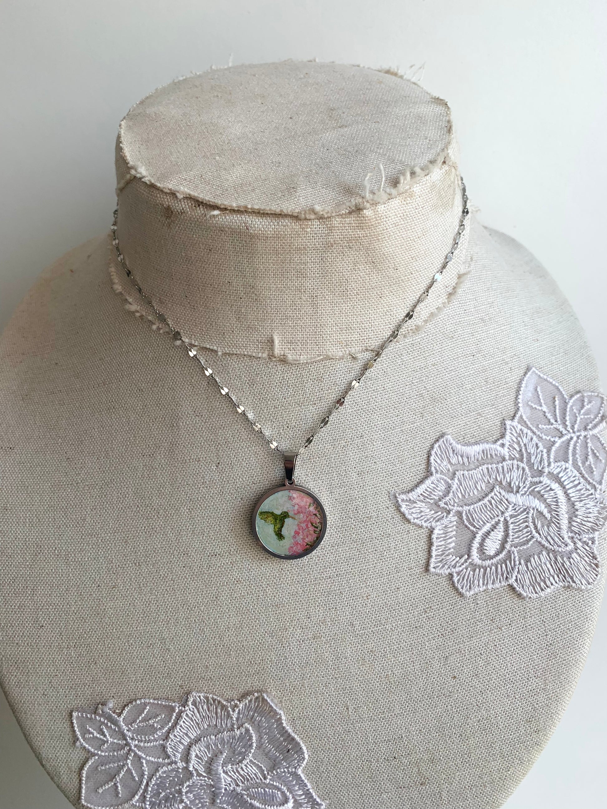 Hand-Painted mini painting in a Stainless Steel bezel with a Stainless Steel chain